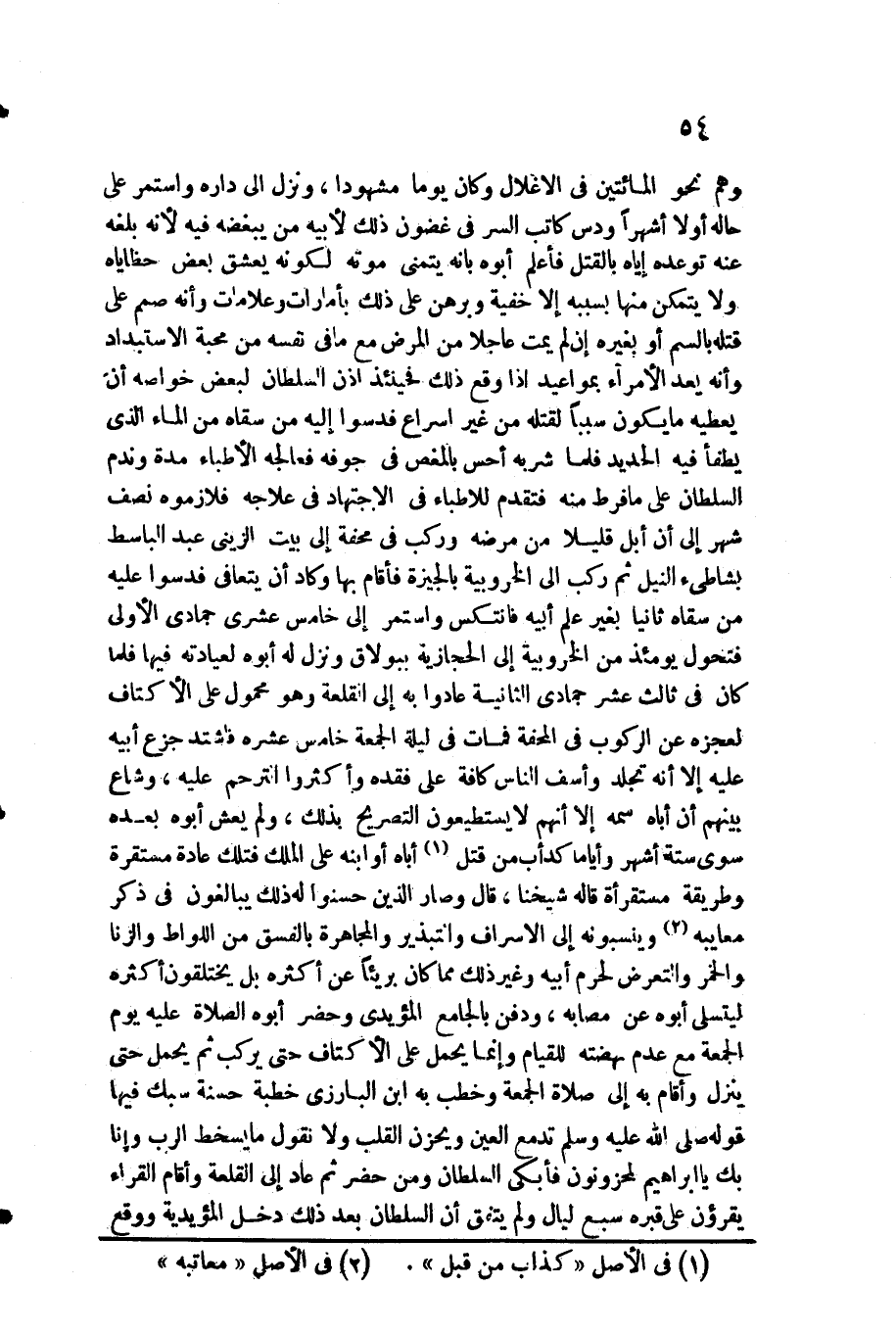 وهم نَحْو الْمِائَتَيْنِ فِي الأغلال وَكَانَ يَوْمًا مشهودا وَنزل إِلَى دَاره وَاسْتمرّ على حَاله أَولا أشهرا ودس كَاتب)
