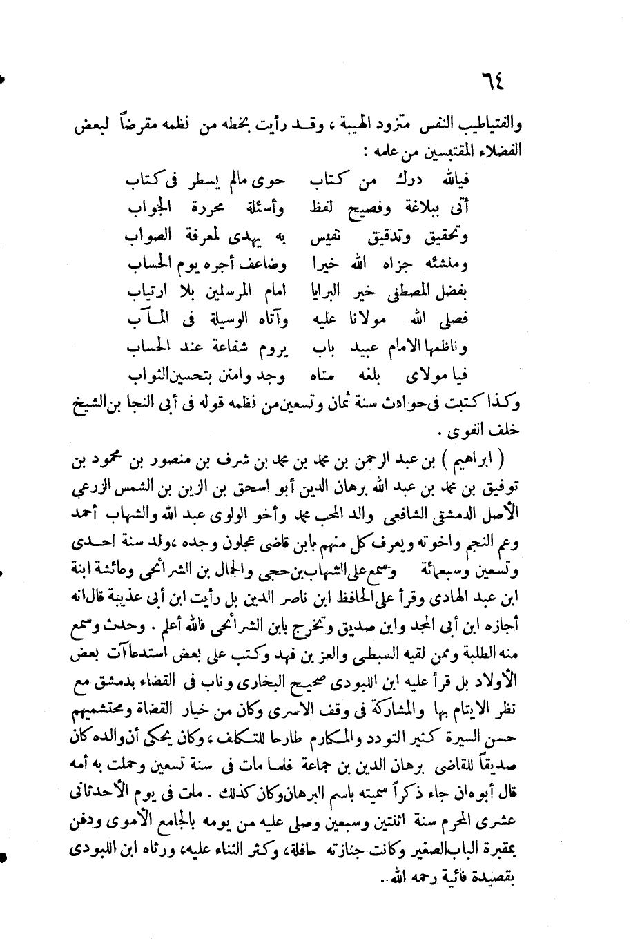 وَكَذَا كتبت فِي حوادث سنة ثَمَان وَتِسْعين من نظمه قَوْله فِي أبي النجا بن الشَّيْخ خلف الفوى.