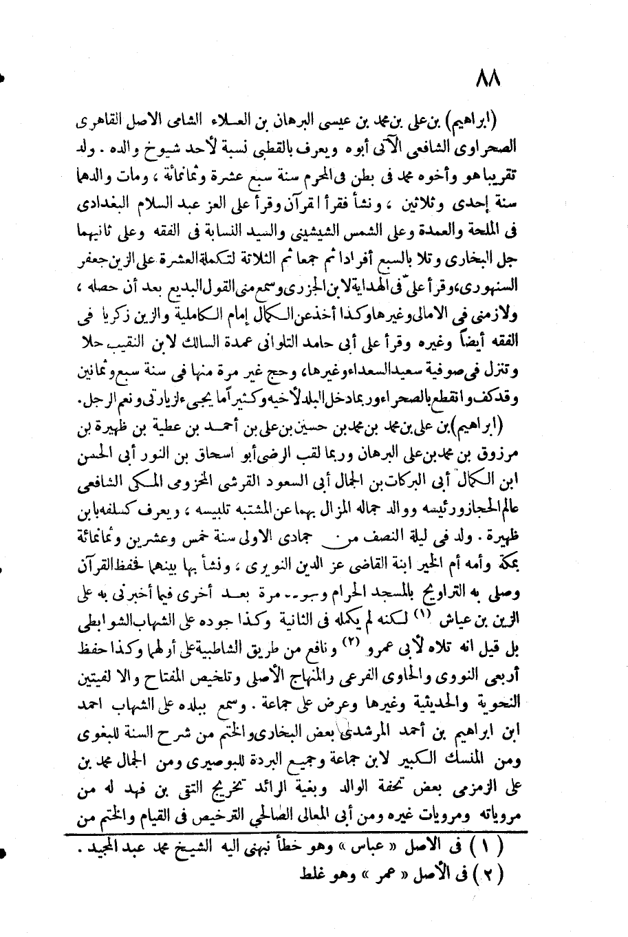 النسابة فِي الْفِقْه وعَلى ثَانِيهمَا جلّ البُخَارِيّ وتلا بالسبع أفرادا ثمَّ جمعا ثمَّ الثَّلَاثَة لتكملة الْعشْرَة على الزين جَعْفَر السنهوري وَقَرَأَ عَليّ فِي الْهِدَايَة لِابْنِ الْجَزرِي وَسمع مني القَوْل البديع بعد أَن حصله ولازمني فِي الأمالي وَغَيرهَا وَكَذَا أَخذ عَن الْكَمَال إِمَام الكاملية والزين زَكَرِيَّا فِي الْفِقْه أَيْضا وَغَيره وَقَرَأَ على أبي حَامِد التلواني عُمْدَة السالك لِابْنِ النَّقِيب حلا وتنزل فِي صوفية سعيد السُّعَدَاء وَغَيرهَا وَحج غير مرّة مِنْهَا فِي سنة سبع وَثَمَانِينَ وَقد كف وَانْقطع بالصحراء وَرُبمَا دخل الْبَلَد لِأَخِيهِ وَكَثِيرًا مَا يَجِيء لزيارتي وَنعم الرجل.