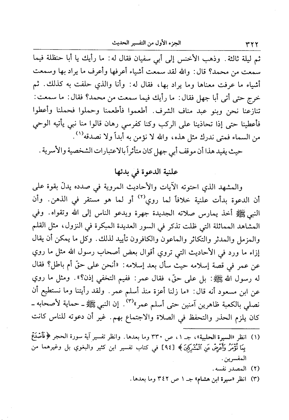 (1) انظر «السيرة الحلبية» ، ج 1، ص 330 وما بعدها. وانظر تفسير آية سورة الحجر فَاصْدَعْ بِما تُؤْمَرُ وَأَعْرِضْ عَنِ الْمُشْرِكِينَ [94] في كتاب تفسير ابن كثير والبغوي بل وغيرهما من المفسرين.