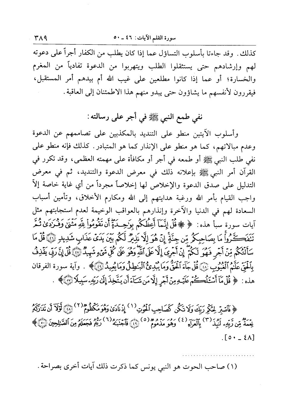 نفي طمع النبي صلّى الله عليه وسلّم في أجر على رسالته: