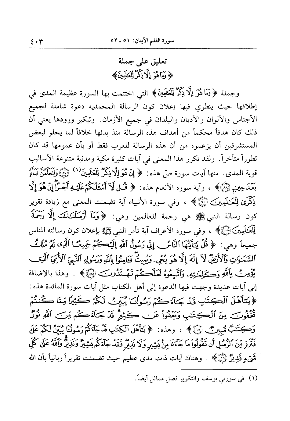 (1) في سورتي يوسف والتكوير فصل مماثل أيضا.