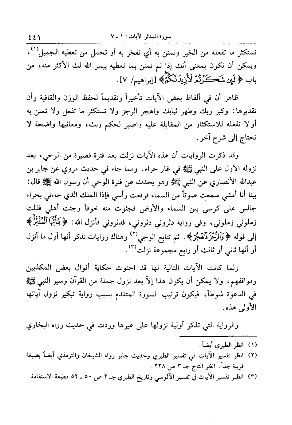 (2) انظر تفسير الآيات في تفسير الطبري وحديث جابر رواه الشيخان والترمذي أيضا بصيغة قريبة جدا. انظر التاج ج 3 ص 228.