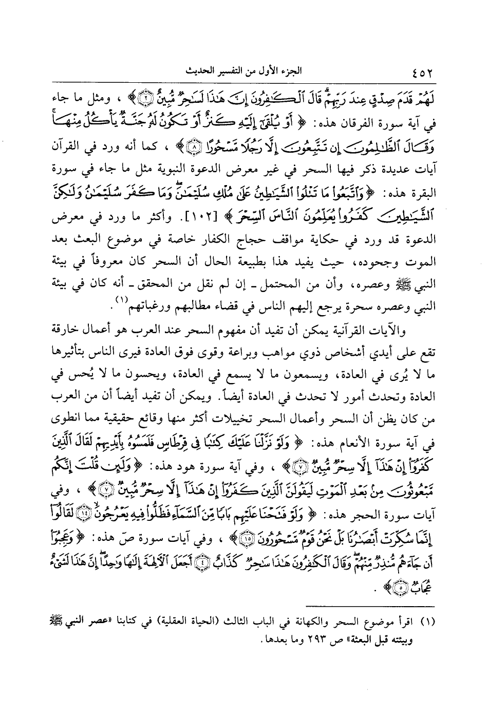 (1) اقرأ موضوع السحر والكهانة في الباب الثالث (الحياة العقلية) في كتابنا «عصر النبي صلّى الله عليه وسلم وبيئته قبل البعثة» ص 293 وما بعدها.