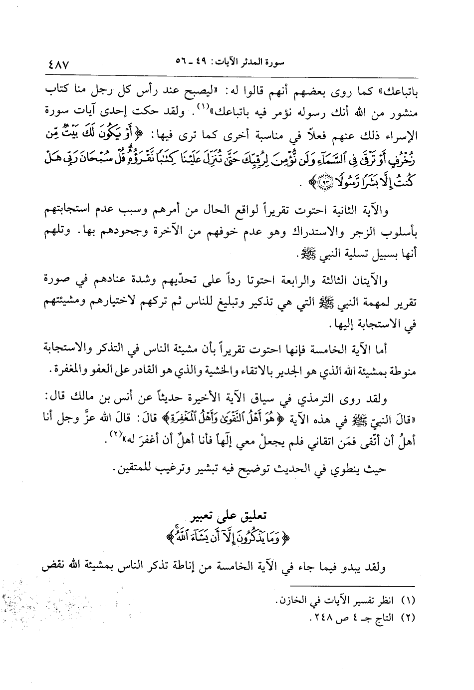 تعليق على تعبير وَما يَذْكُرُونَ إِلَّا أَنْ يَشاءَ اللَّهُ