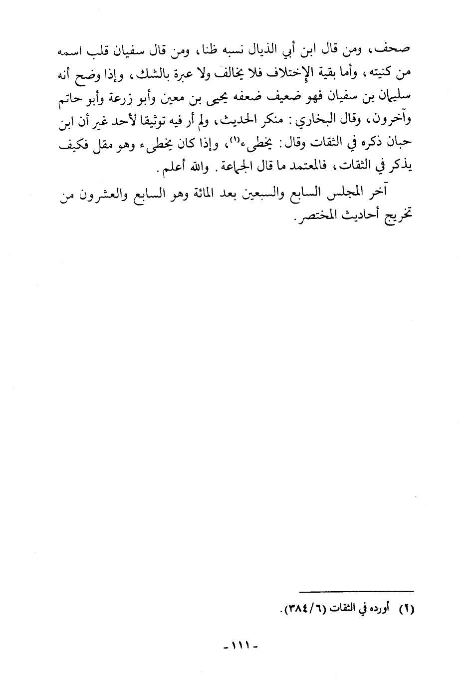 آخر المجلس السابع والسبعين بعد المائة وهو السابع والعشرون من تخريج أحاديث المختصر.