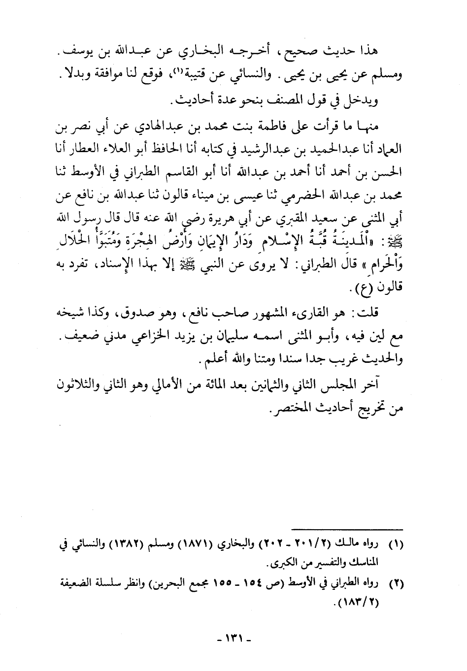 (¬2) رواه الطبراني في الأوسط (ص 154 - 155 مجمع البحرين) وانظر سلسلة الضعيفة (2/ 183).
