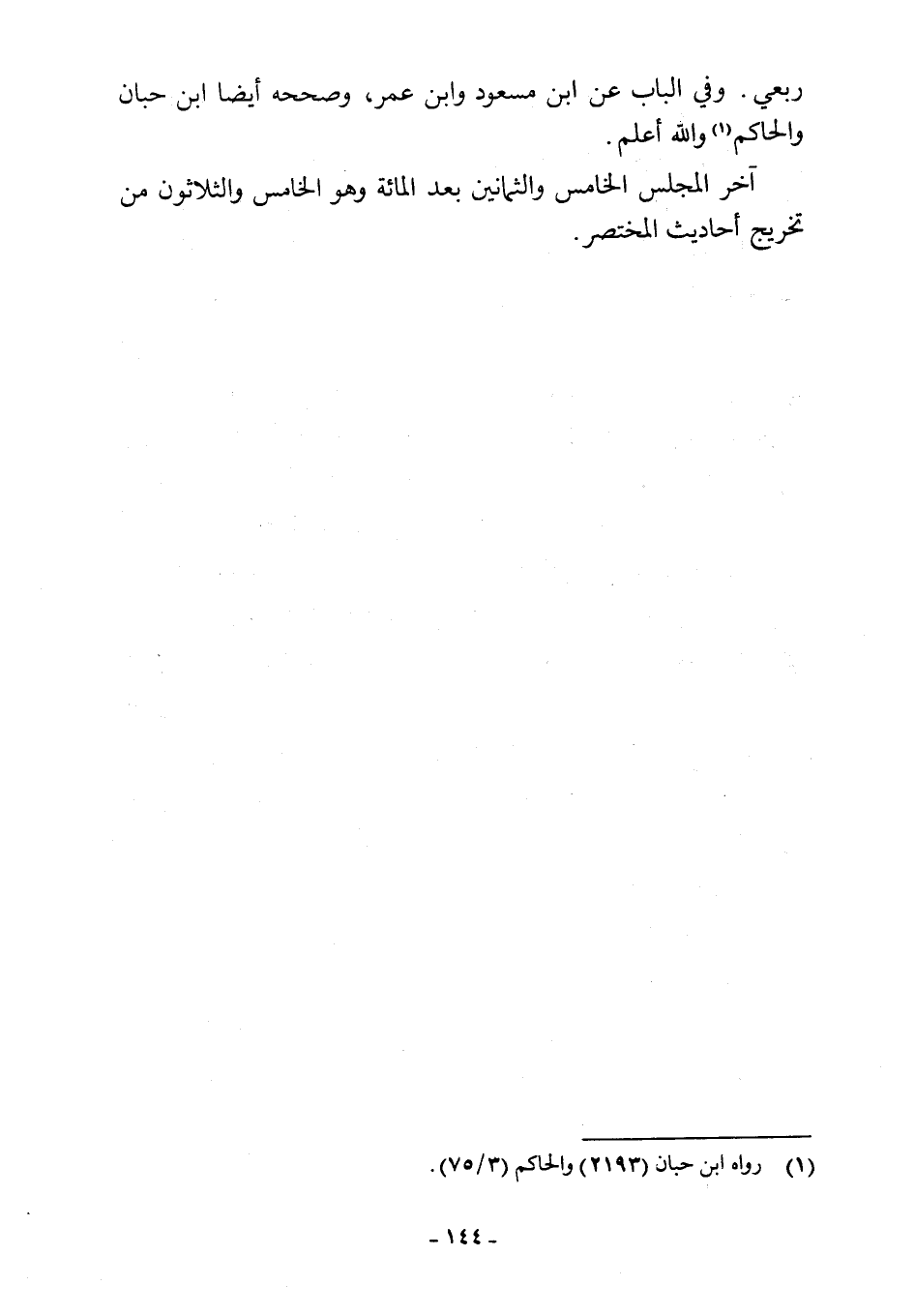 آخر المجلس الخامس والثمانين بعد المائة وهو الخامس والثلاثون من تخريج أحاديث المختصر.