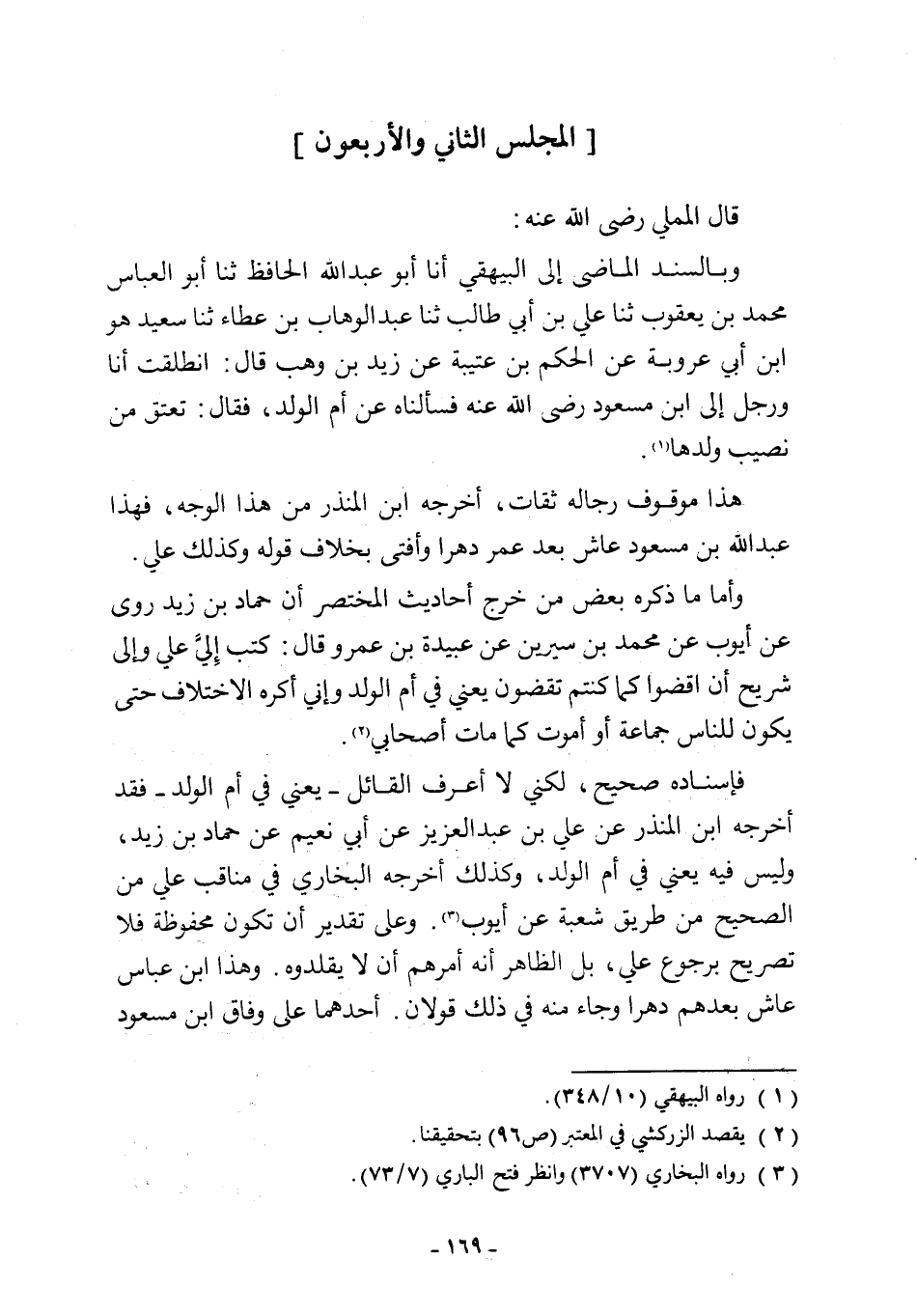 وبالسند الماضى إلى البيهقي أنا أبو عبد اللَّه الحافظ ثنا أبو العباس محمد بن يعقوب ثنا علي أبي طالب ثنا عبد الوهاب بن عطاء ثنا سعيد هو ابن أبي عروبة عن الحكم بن عتيبة عن زيد بن وهب قال: انطلقت أنا ورجل إلى ابن مسعود رضي اللَّه عنه فسألناه عن أم الولد، فقال: تعتق من نصيب ولدها (¬1).