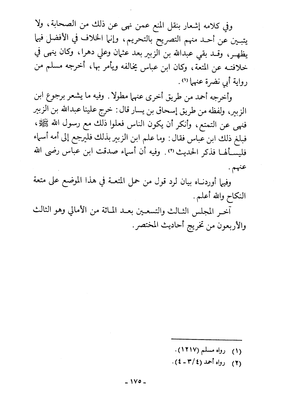 آخر المجلس الثالث والتسعين بعد المائة من الأمالي وهو الثالث والأربعون من تخريج أحاديث المختصر.