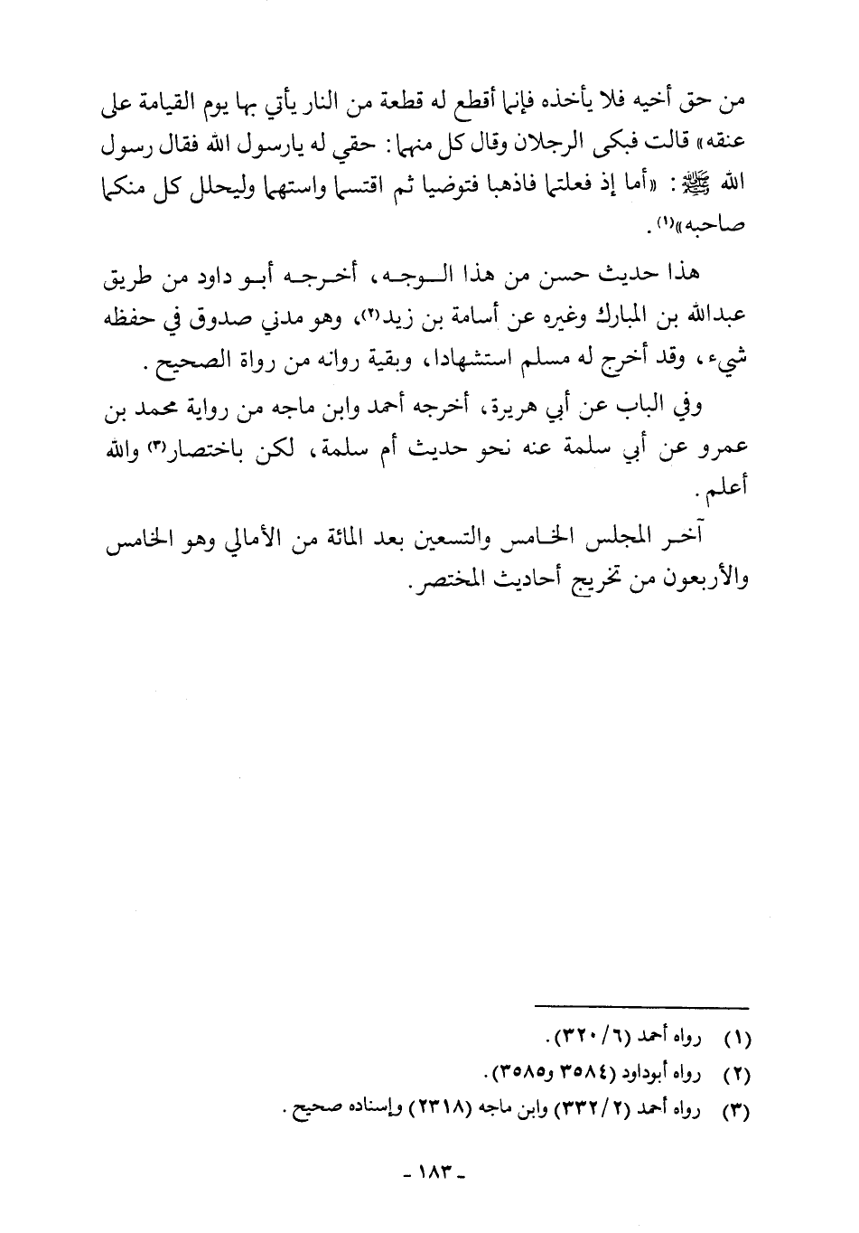 آخر المجلس الخامس والتسعين بعد المائة من الأمالي وهو الخامس والأربعون من تخريج أحاديث المختصر.