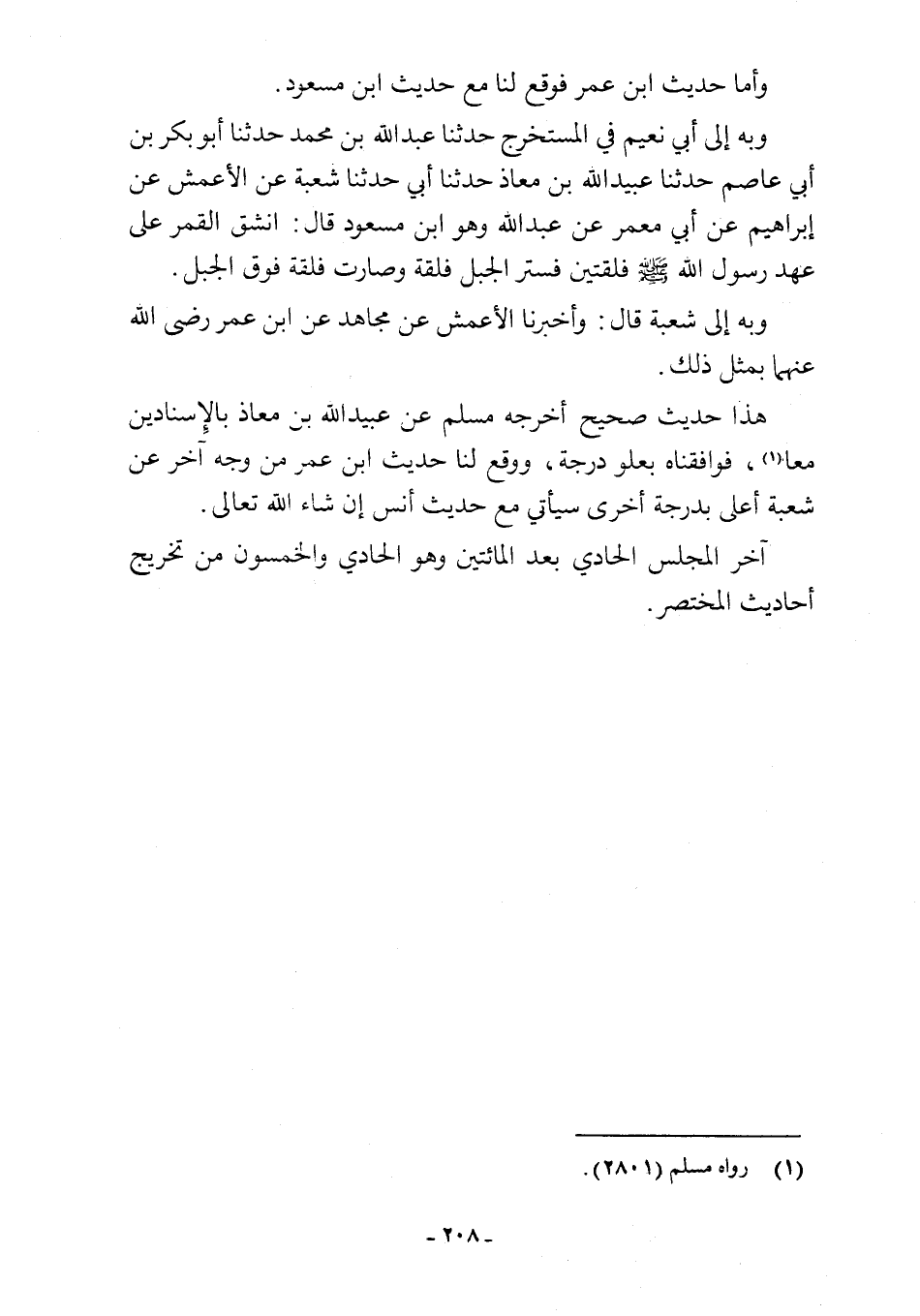 آخر المجلس الحادي بعد المائتين وهو الحادي والخمسون من تخريج أحاديث المختصر.