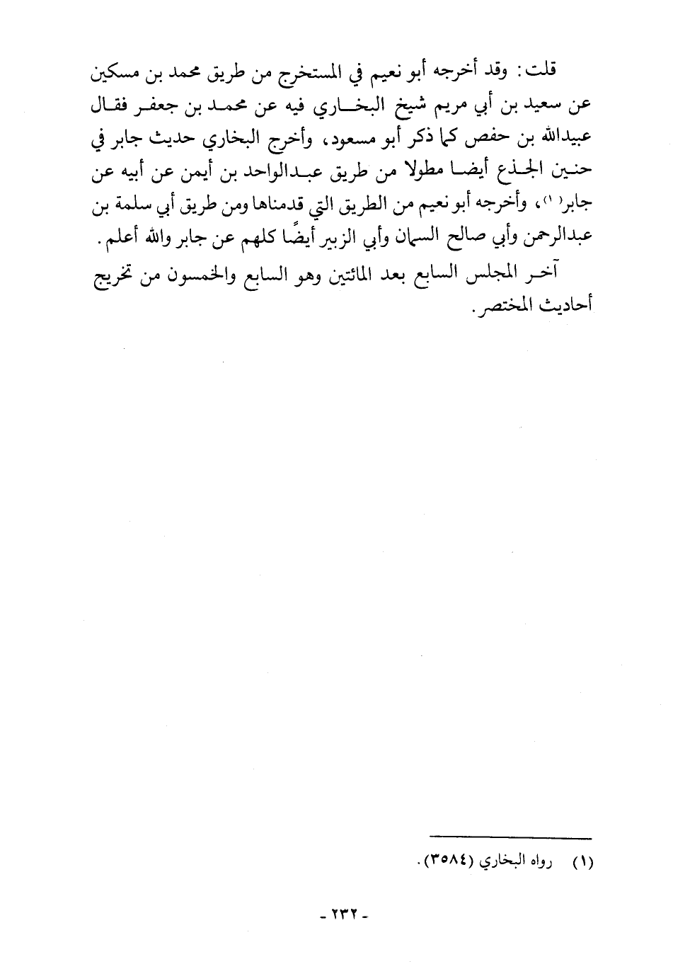 آخر المجلس السابع بعد المائتين وهو السابع والخمسون من تخريج أحاديث المختصر.