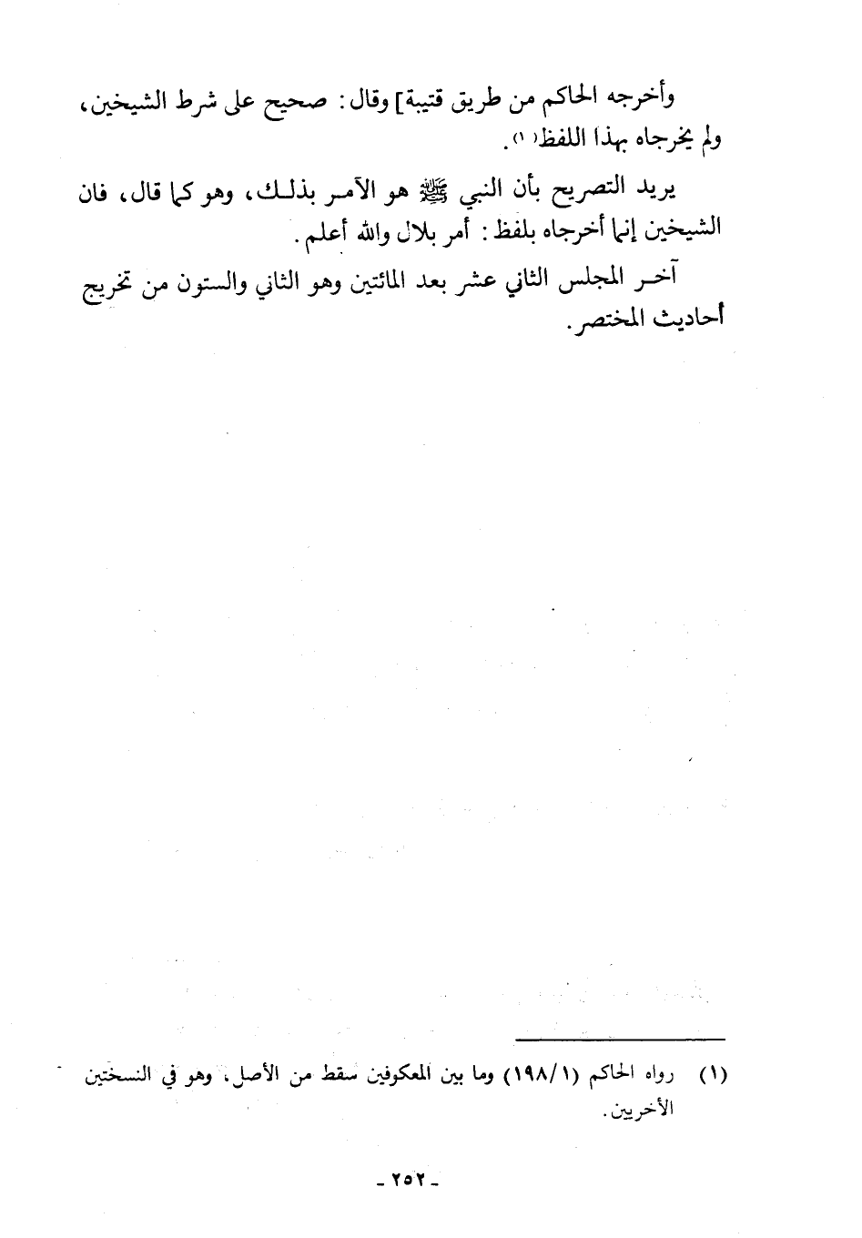 آخر المجلس الثاني عشر بعد المائتين وهو الثاني والستون من تخريج أحاديث المختصر.