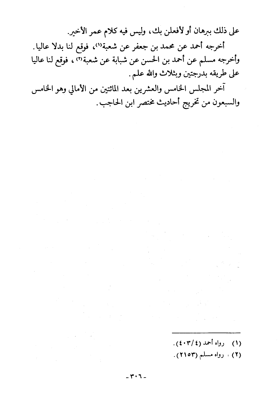 آخر المجلس الخامس والعشرين بعد المائتين من الأمالي وهو الخامس والسبعون من تخريج أحاديث مختصر ابن الحاجب.
