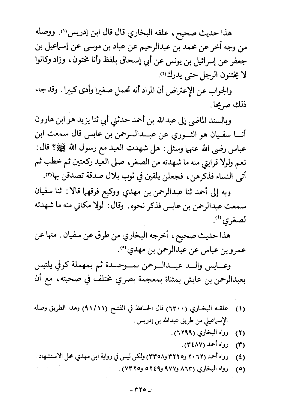 (¬4) رواه أحمد (2062 و 3522 و 3358) ولكن ليس في رواية ابن مهدي محل الاستشهاد.