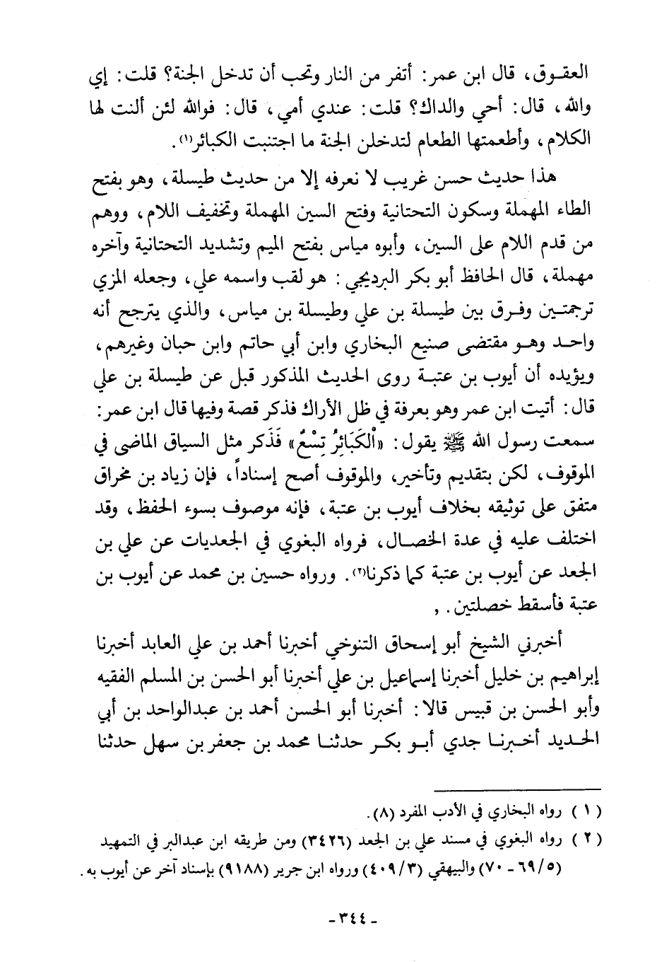 (¬2) رواه البغوي في مسند علي بن الجعد (3426) ومن طريقه ابن عبد البر في التمهيد (5/ 69 - 70) والبيهقي (3/ 409) ورواه ابن جرير (9188) بإسناد آخر عن أيوب به.