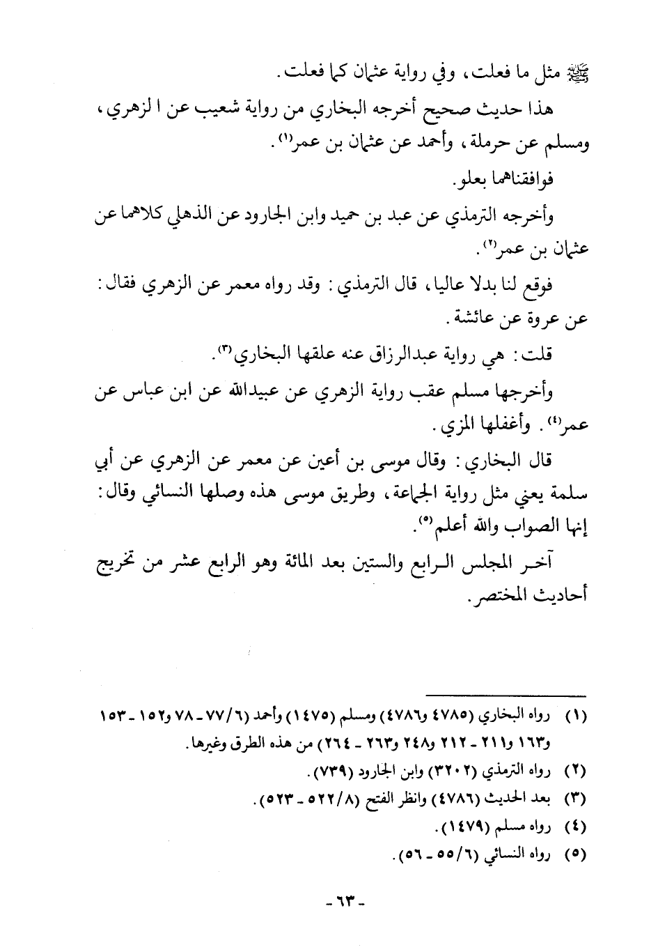 آخر المجلس الرابع والستين بعد المائة وهو الرابع عشر من تخريج أحاديث المختصر.