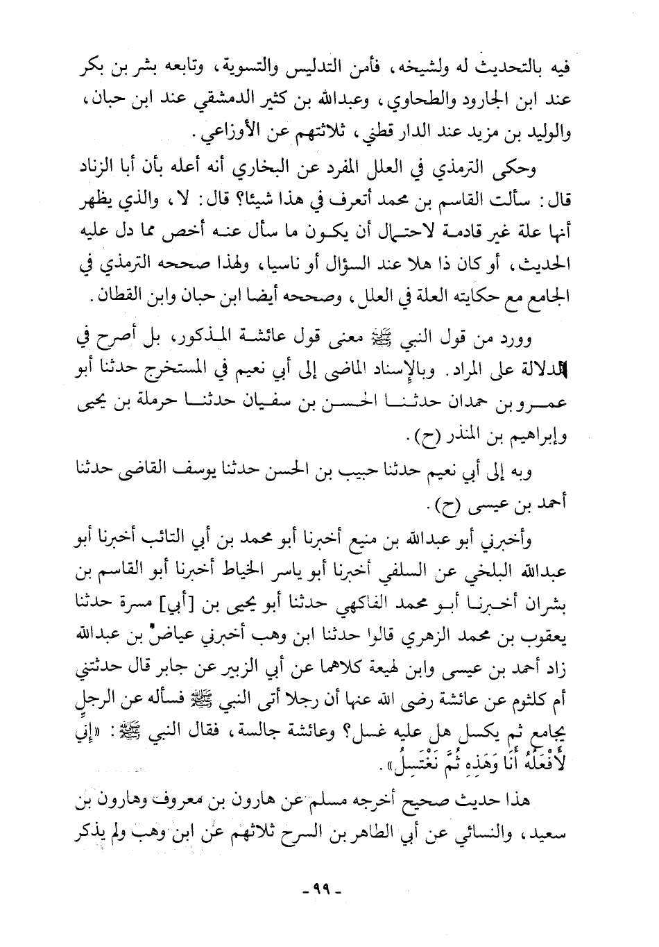 وحكى الترمذي في العلل المفرد عن البخاري أنه أعله بأن أبا الزناد قال: سألت القاسم بن محمد أتعرف في هذا شيئا؟ قال: لا، والذي يظهر أنها علة غير قادمة لاحتمال أن يكون ما سأل عنه أخص مما دل عليه الحديث، أو كان ذا هلا عند السؤال أو ناسيا، ولهذا صححه الترمذي في الجامع مع حكايته العلة فى العلل، وصححه أيضًا ابن حبان وابن القطان.