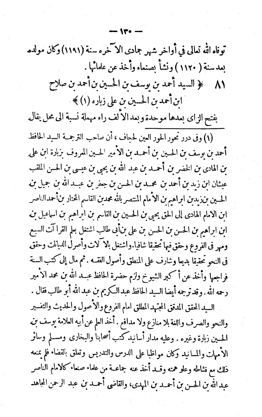 (81) السَّيِّد أَحْمد بن يُوسُف بن الْحُسَيْن بن أَحْمد بن صَلَاح ابْن أَحْمد بن الْحُسَيْن بن علي زبارة