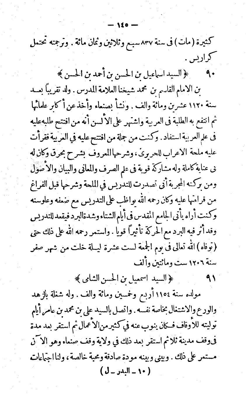 (91) السَّيِّد اسمعيل بن الْحسن الشامي
