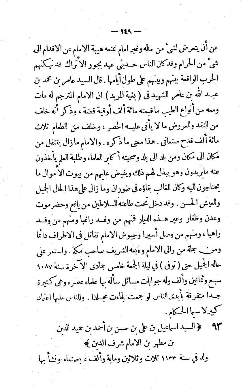 (93) السَّيِّد اسماعيل بن على بن حسن بن أَحْمد بن حميد الدَّين بن مطهر بن الإمام شرف الدَّين