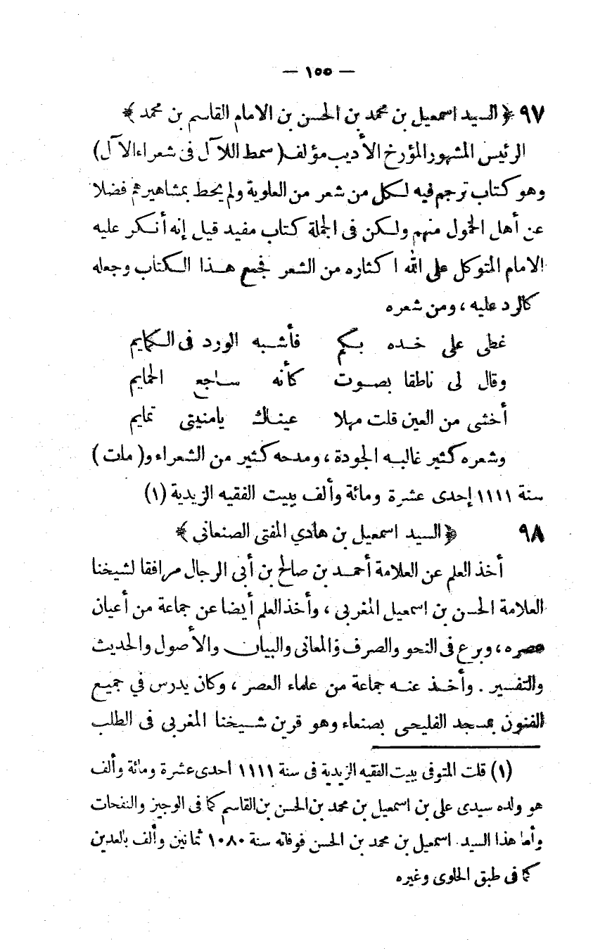 (97) السَّيِّد اسمعيل بن مُحَمَّد بن الْحسن بن الإمام الْقَاسِم بن مُحَمَّد