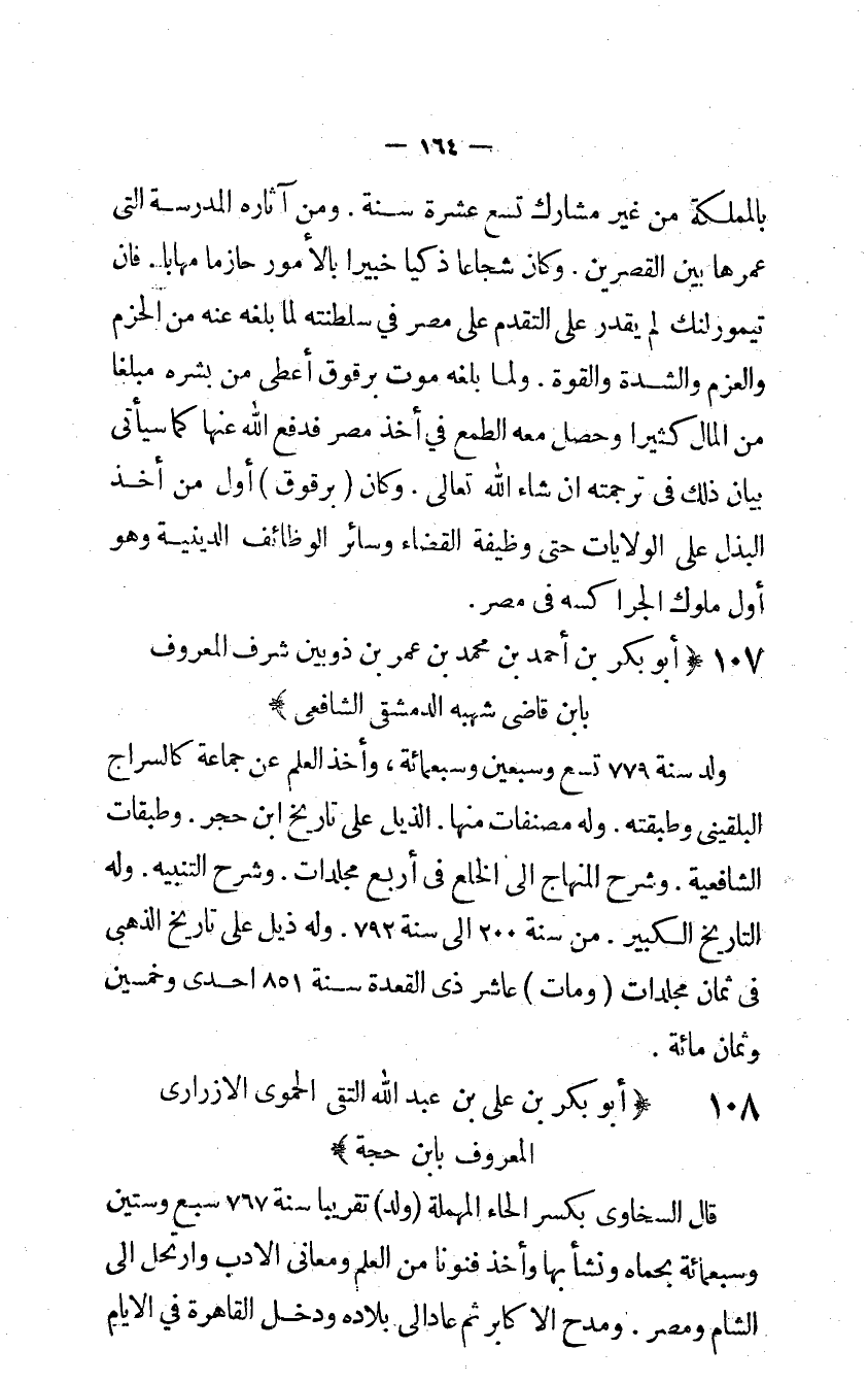 (107) أَبُو بكر بن أَحْمد بن مُحَمَّد بن عمر بن لَعَلَّه ذُؤَيْب شرف الْمَعْرُوف تنكر بِابْن قاضي شهبة الدمشقي الشافعي