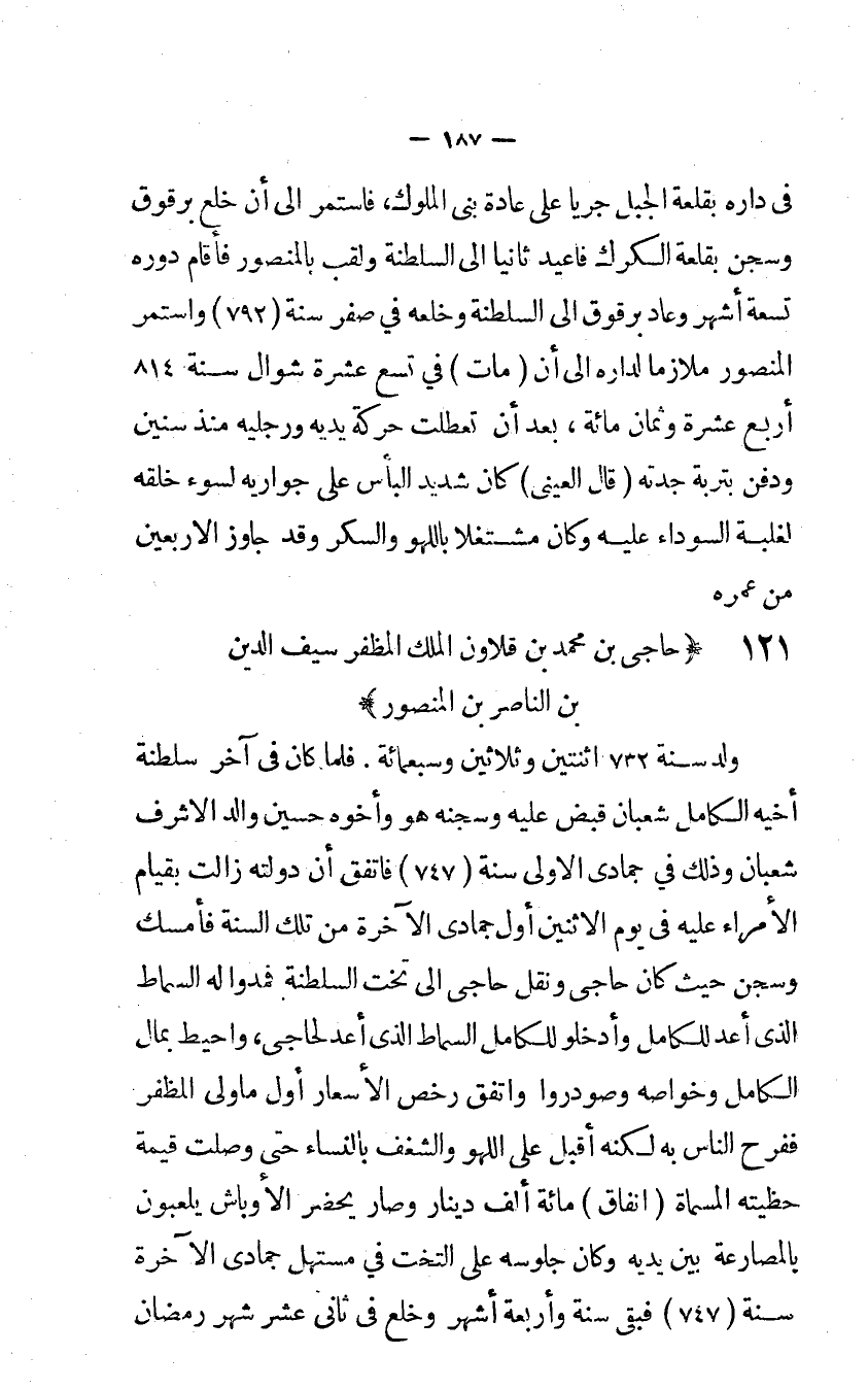 (121) حاجي بن مُحَمَّد بن قلاون الْملك المظفر سيف الدَّين بن النَّاصِر بن الْمَنْصُور