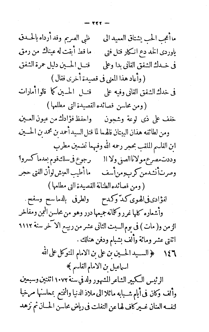 146 - السَّيِّد الْحُسَيْن بن علي بن الإمام المتَوَكل على الله إسماعيل بن الإمام الْقَاسِم