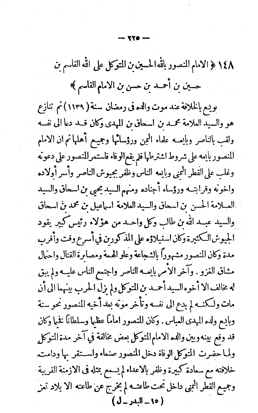148 - الإمام الْمَنْصُور بِاللَّه الْحُسَيْن بن المتَوَكل على الله الْقَاسِم بن حُسَيْن بن أَحْمد بن حسن بن الإمام الْقَاسِم