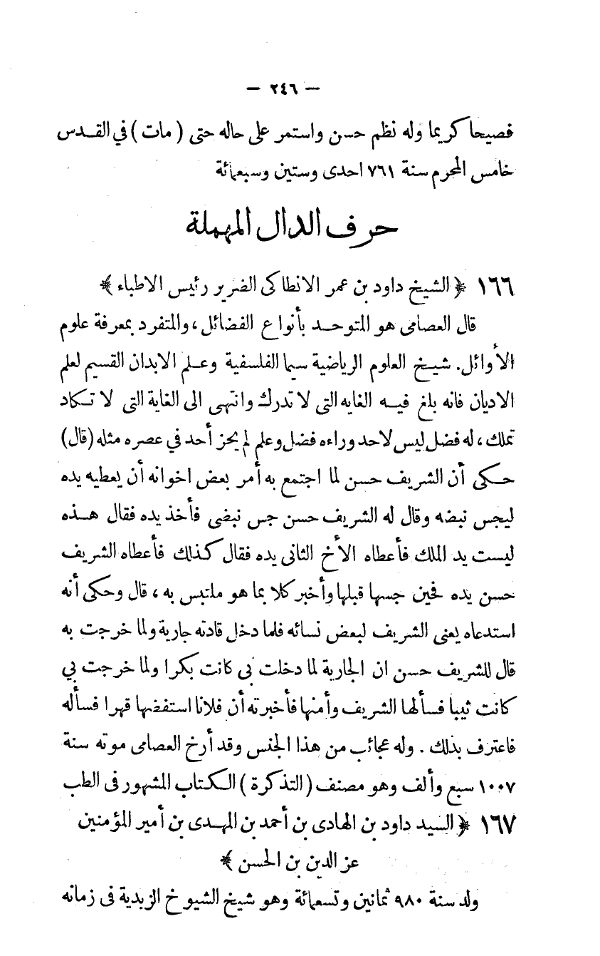 166 - الشَّيْخ دَاوُد بن عمر الانطاكى الضَّرِير رَئِيس الأطباء