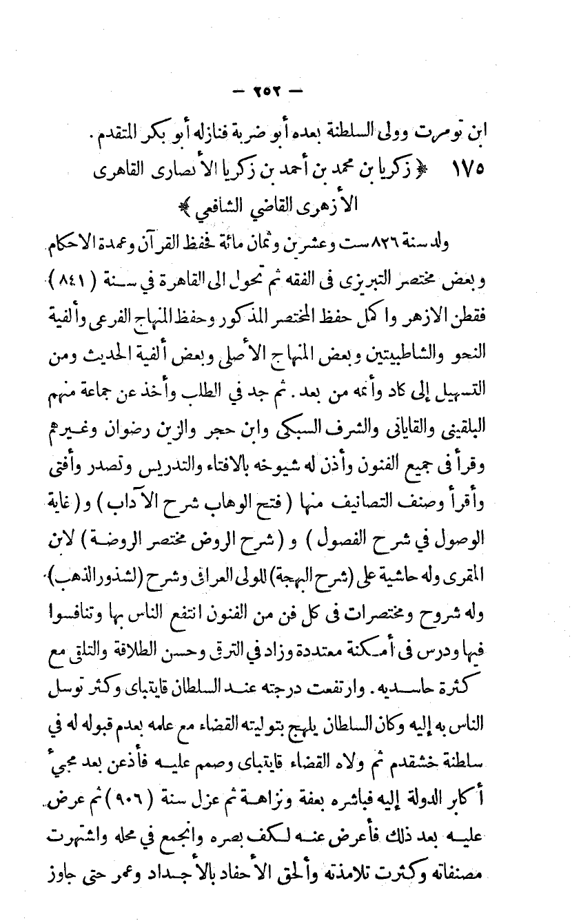 175 - زَكَرِيَّا بن مُحَمَّد بن أَحْمد بن زَكَرِيَّا الأنصاري القاهري الأزهري القاضي الشافعي