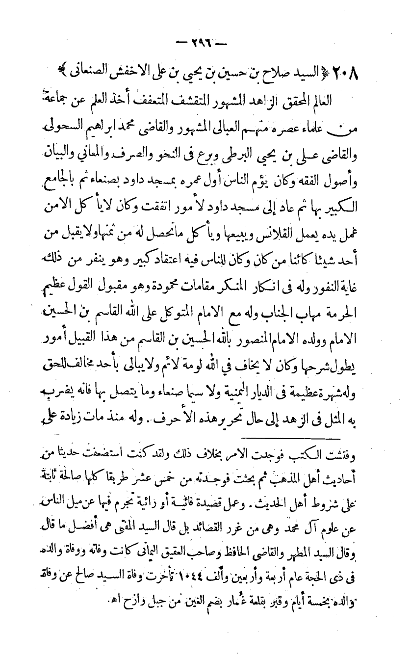 208 - السَّيِّد صَلَاح بن حُسَيْن بن يحيى بن على الاحفش الصّنعاني