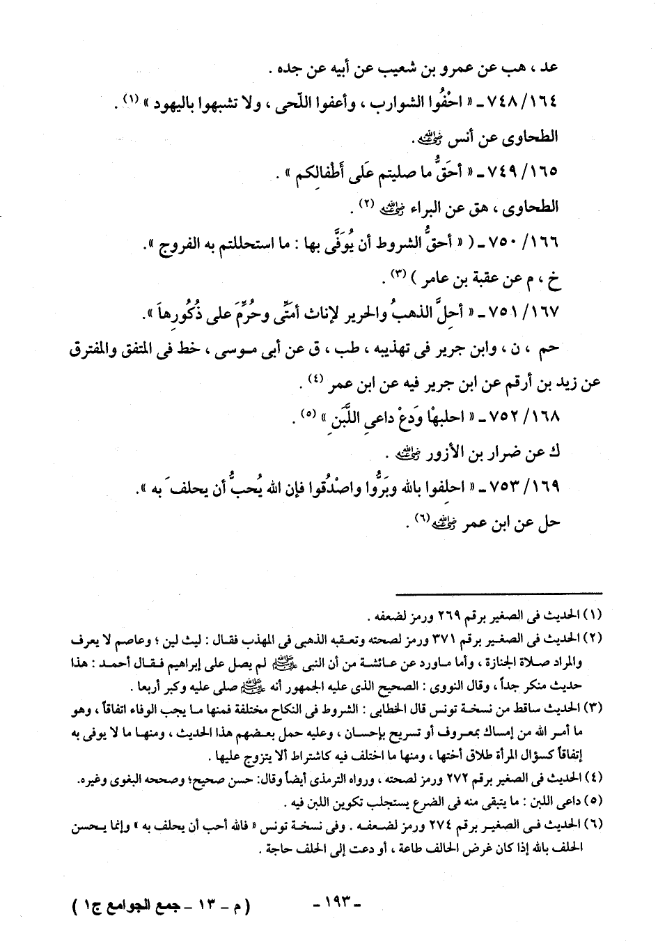 164/ 748 - "احْفُوا الشوارب، وأعفوا اللّحى، ولا تشبهوا باليهود" (¬1).