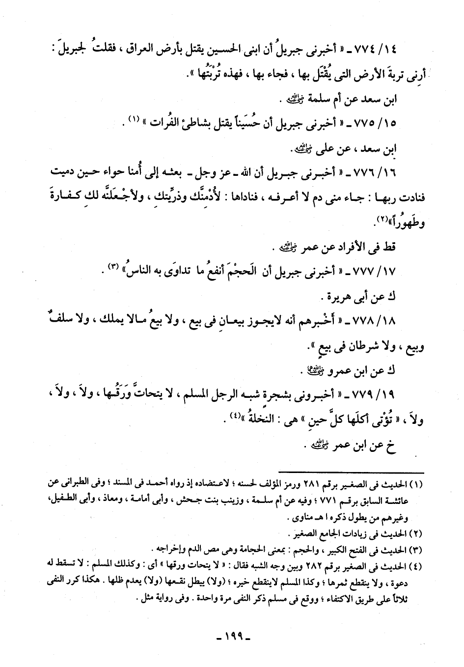 15/ 775 - "أخبرنى جبريل أن حُسَينًا يقتل بشاطئ الفُرات" (¬1).