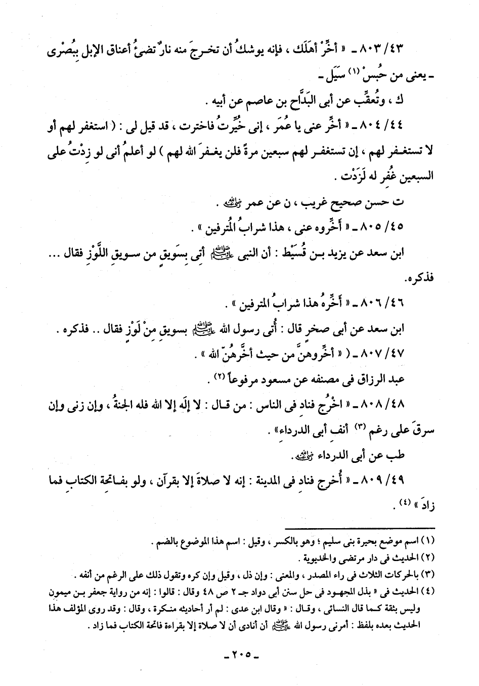 49/ 809 - "أُخرج فنادِ في المدينة: إنه لا صلاةَ إلا بقرآن، ولو بفاتِحة الكتابِ فما زادَ" (¬4).