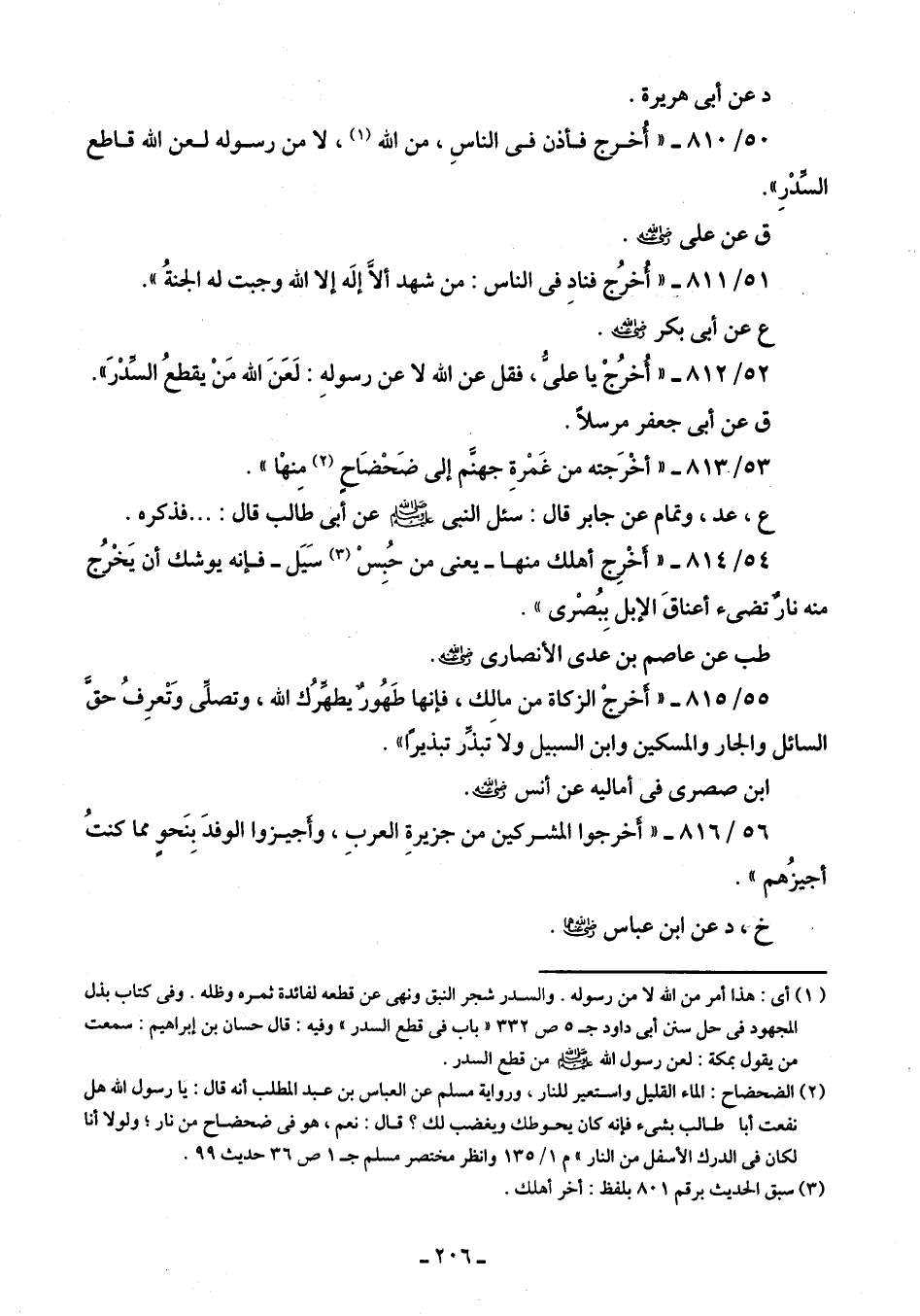 52/ 812 - "أُخرُجْ يا علىُّ، فقل عن الله لا عن رسولهِ: لَعَنَ الله مَنْ يقطعُ السِّدْرَ".