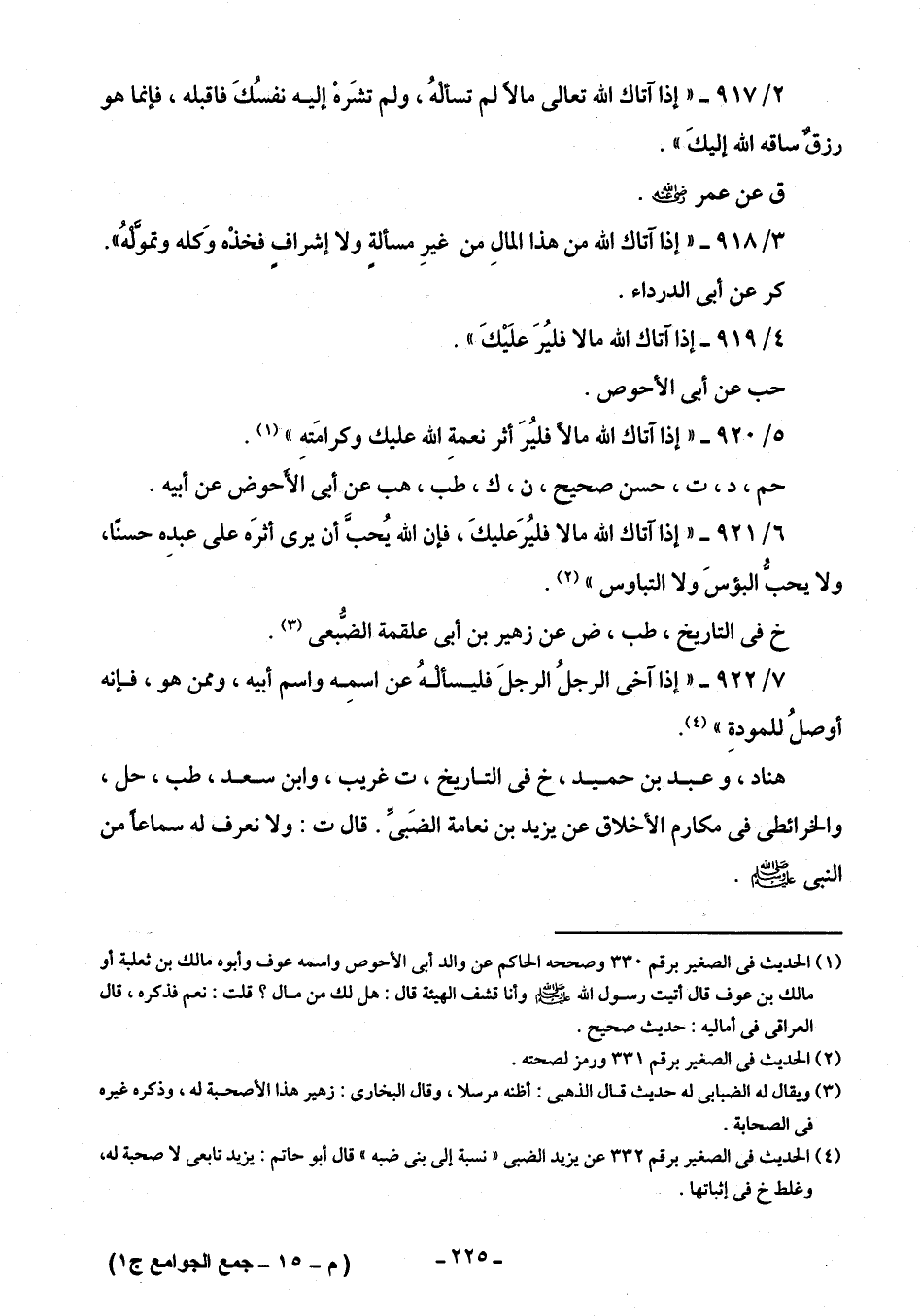3/ 918 - "إذا آتاك الله من هذا المالِ من غيرِ مسألةٍ ولا إشرافٍ فخذْه وَكله وتموَّلْهُ".