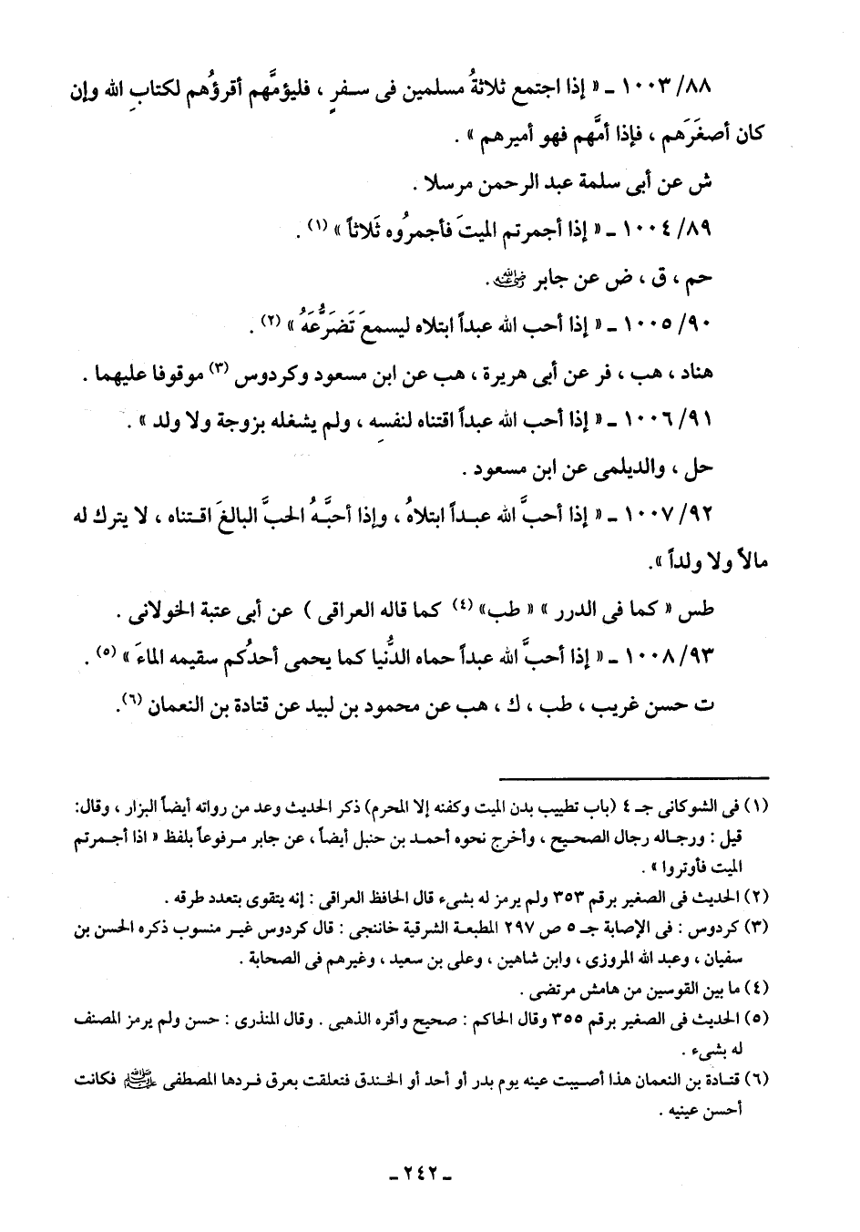 89/ 1004 - "إذا أجمرتم الميتَ فأجمرُوه ثَلاثًا" (¬1).