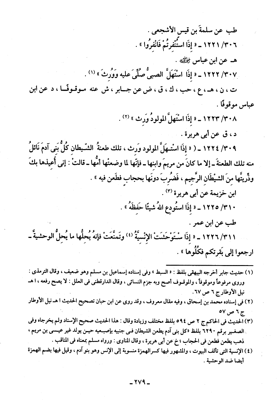 307/ 1222 - " إِذَا اسْتَهَلَّ الصبيُّ صُلِّيَ عليه وَوُرِثَ" (¬1).