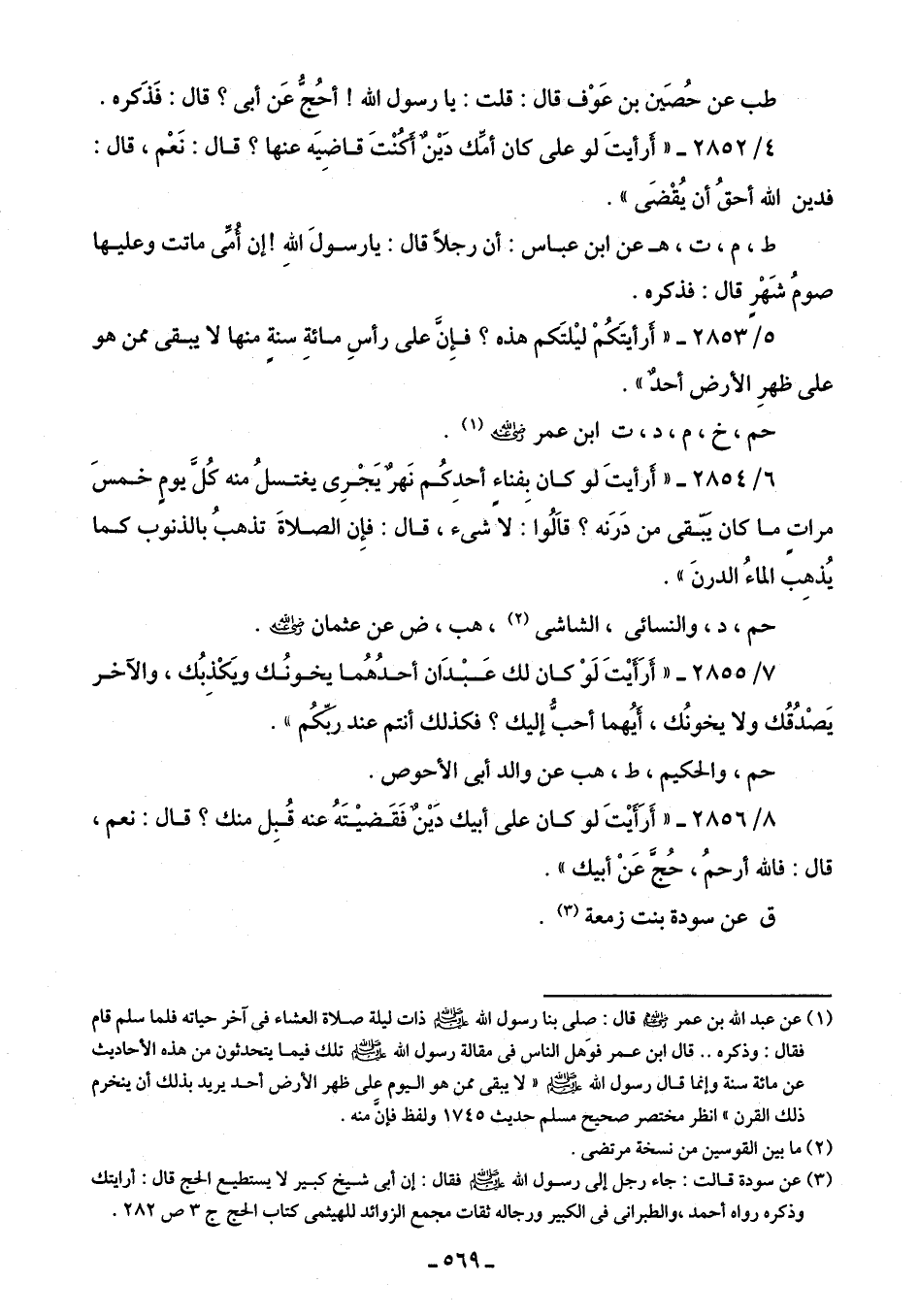 (¬3) عن سودة قالت: جاء رجل إلى رسول الله - صلى الله عليه وسلم - فقال: إن أبي شيخ كبير لا يستطيع الحج قال: أرأيتك وذكره رواه أحمد، والطبراني في الكبير ورجاله ثقات مجمع الزوائد للهيثمى كتاب الحج ج 3 ص 282.