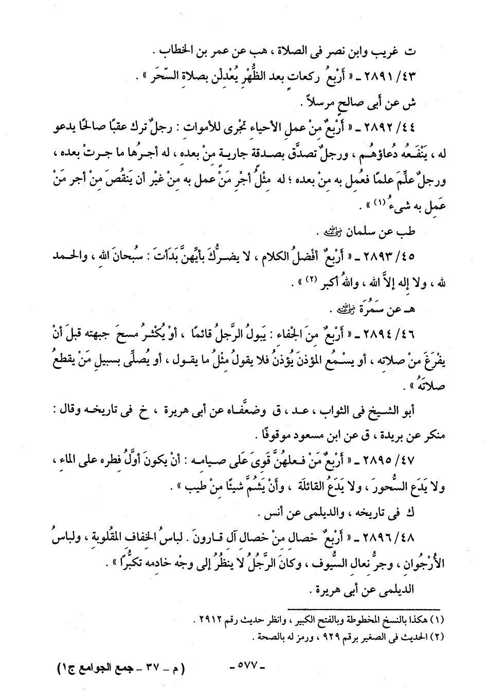 45/ 2893 - "أربعٌ أفْضلُ الكلام، لا يضرُّكَ بأيِّهنَّ بَدَأتَ: سُبحانَ اللهِ، والحمد لله، ولا إِله إلَّا الله، واللهُ أكبر (¬2) ".