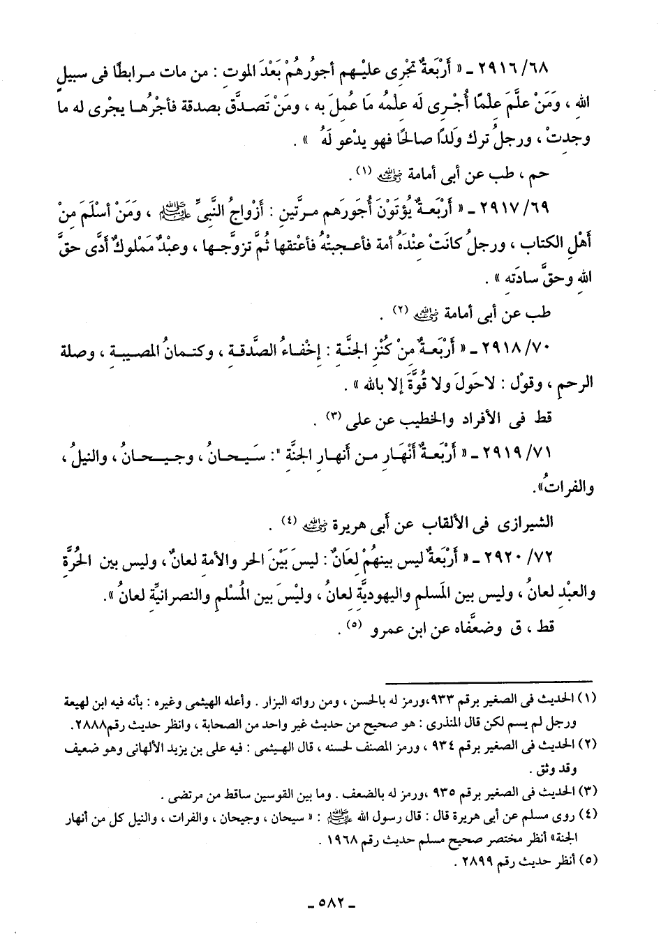 71/ 2919 - "أربَعةُ أَنْهارِ من أنهارِ الجنَّةِ": سَيحانُ، وجيحانُ، والنيلُ، والفراتُ".