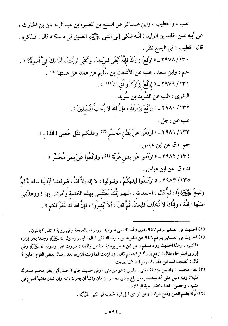 134/ 2982 - "ارفَعوا عَن بطنِ عُرَنَة (¬4)؛ وارفَعُوا عَنْ بطن مُحَسِّر".