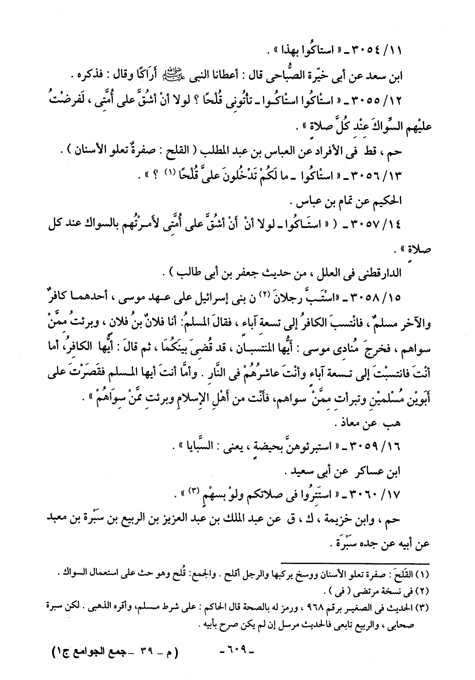 12/ 3055 - "استْاكُوا استْاكُوا - تأتُونِى قُلحًا؟ لولا أنْ أشُقَّ على أُمَّتِي، لَفرضْتُ عليهم السّواكَ عِنْد كُل صلاة".
