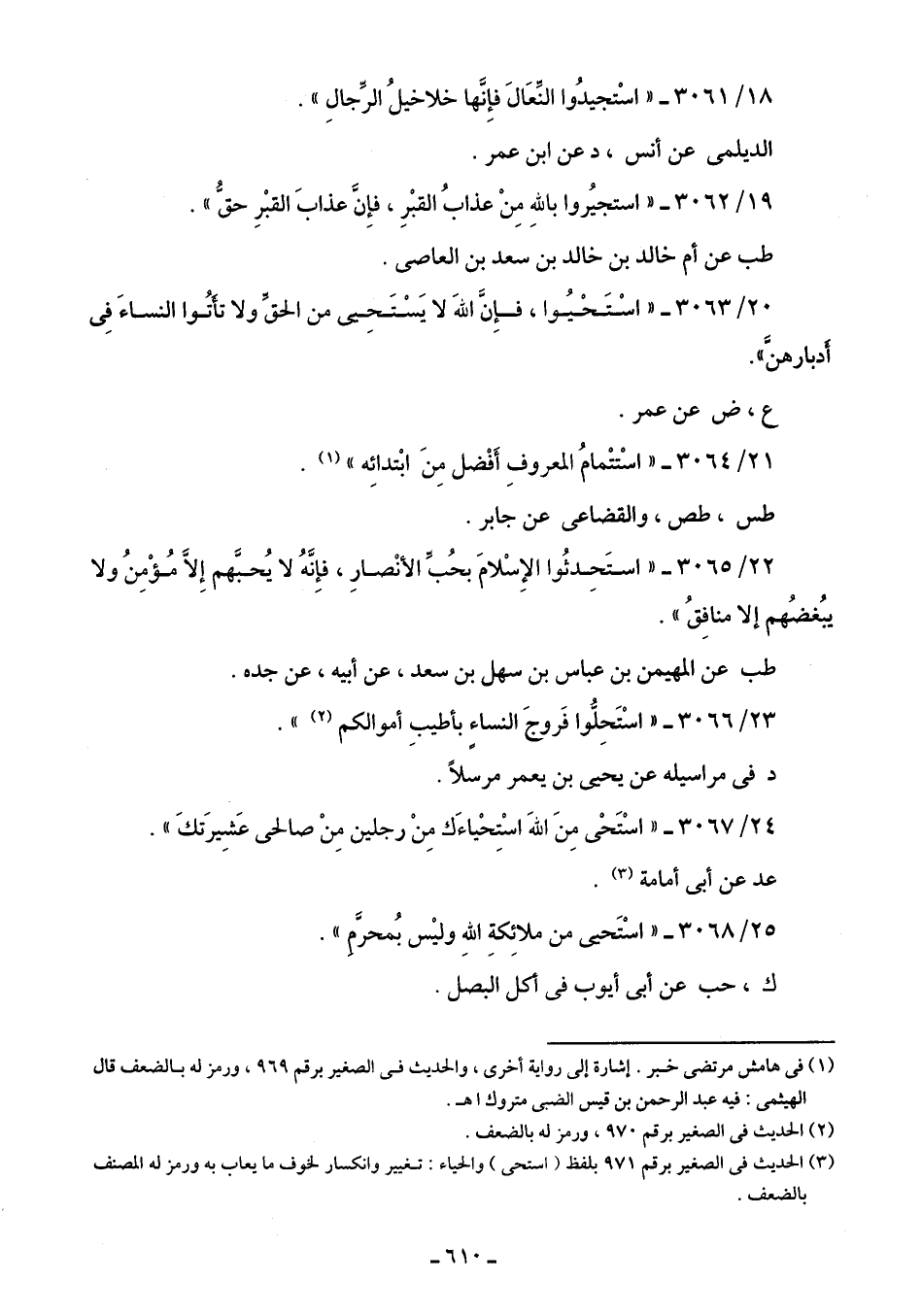 18/ 3061 - "اسْتجيدُوا النِّعَال فإِنَّها خلاخيلُ الرِّجالِ".