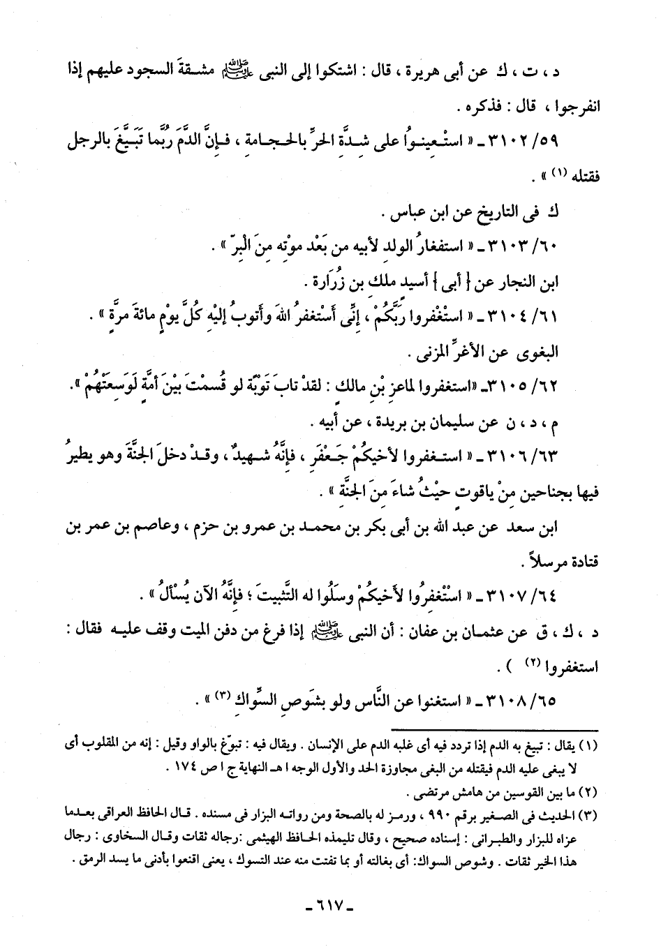 61/ 3104 - "استَغْفروا رَبَّكُمْ، إِنى أسْتغفرُ اللهَ وأتوبُ إليهِ كلَّ يوْمٍ مائةَ مرَّة".