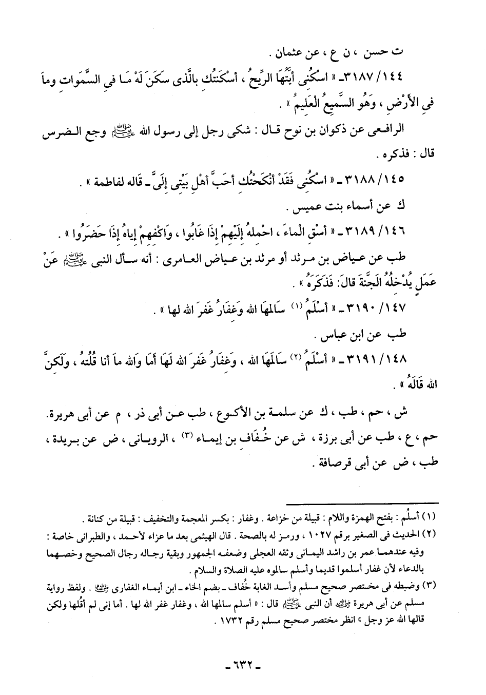 148/ 3191 - "أسْلَمُ (¬2) سَالمَهَا الله، وَغفَارُ غَفرَ الله لَهَا أَمَا وَالله ما أنا قُلُتهُ، وَلَكِنَّ الله قَالهُ".