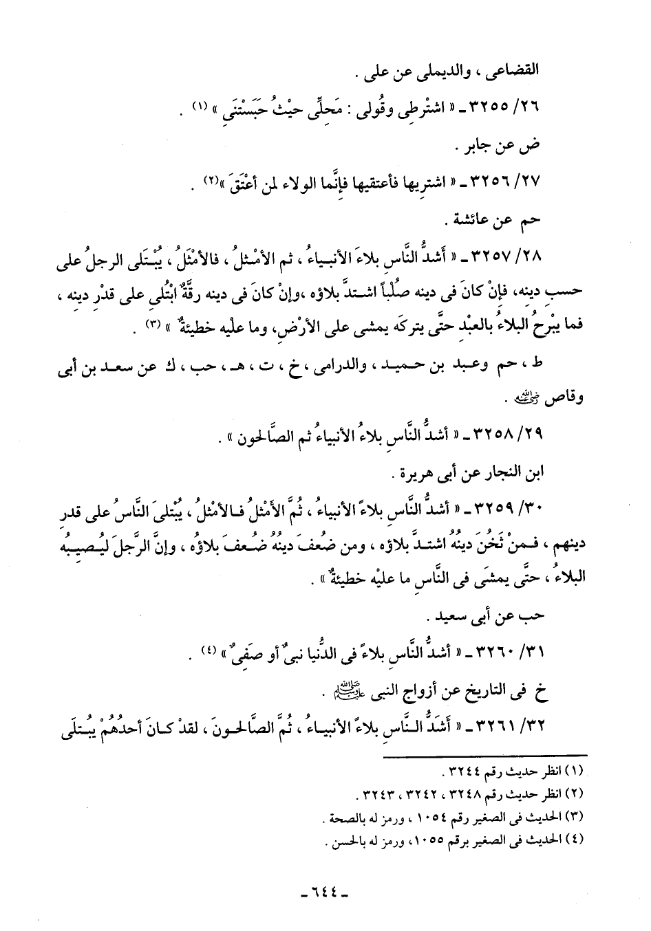 31/ 3260 - "أشدُّ النَّاسِ بلاءً في الدُّنيا نبيٌّ أو صَفِيٌّ" (¬4).